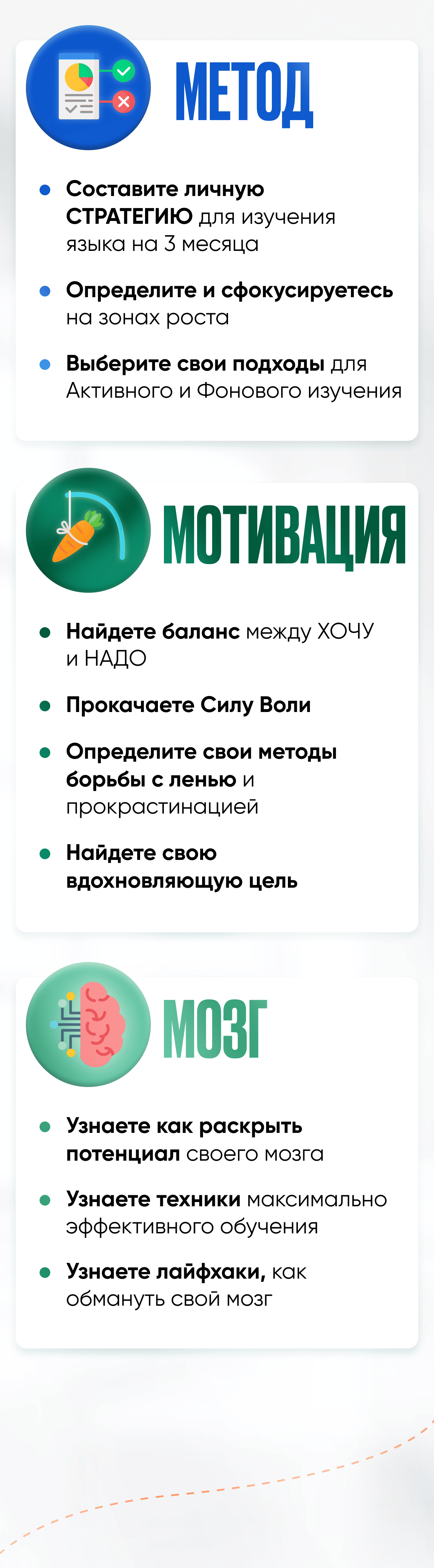 Вам точно будет полезен этот интенсив. С репетитором вы занимаетесь несколько часов в неделю, а для прорыва в языке необходимо заниматься ежедневно. На стратегии вы определите ресурсы и методы, которые можете использовать для активного и фонового изучения языка